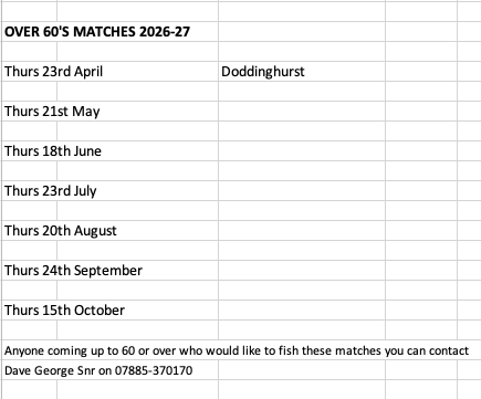 Over 60's Matches 2026-27