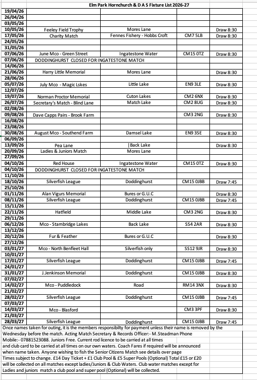 Club Matches 2026-27